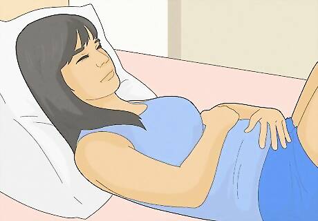Apply a heat therapy wrap to your stomach or back before you exercise. Heat can reduce any pain you might feel. Disposable heat wraps adhere to your skin, providing soothing warmth during your workout. You can purchase them at drug stores or grocery stores.