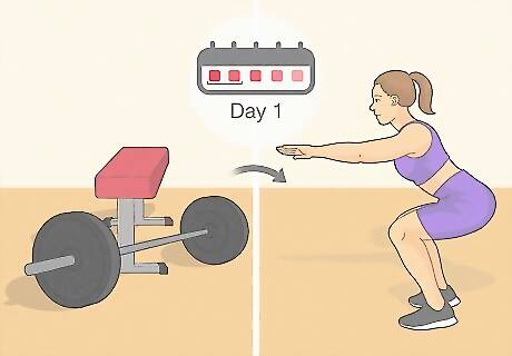 Lower the intensity of your exercise when your period first begins. The first few days of your period are typically the heaviest. This may also be when you feel the worst. Instead of doing endurance training or high-intensity workouts, try choosing a gentler version of your normal exercises. For example, if you normally run three miles, try jogging slowly instead or cut the distance in half. If you're not feeling up to lifting weights, try doing body weight exercises instead.
