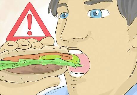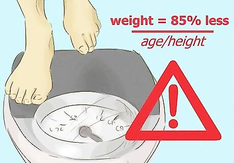 Pay attention to the physical warning signs. You must be honest with yourself when you spot the warning signs of an eating disorder. Having such a condition can be life-threatening. Don't underestimate the seriousness of your eating disorder, and don't overestimate your ability to treat yourself. Some of the warning signs to heed include: You're underweight (less than 85 percent of the accepted norm for your age and height). Your health is poor – you've noticed that you bruise easily, you have no energy, your skin is pale and sallow and your hair is dull and dry. You're dizzy, you feel the cold much more than others (bad circulation), your eyes are dry, your tongue is swollen, your gums are bleeding, and you're retaining water a lot. If you are female and you've missed three or more menstrual cycles. For bulimia some additional signs may be that you have teeth marks on the back of your fingers, nausea, diarrhea, constipation, and swollen joints.