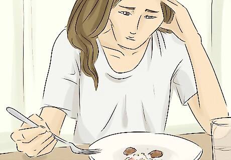Take note of behavioral signs of eating disorders. In addition to physical changes that affect your body, eating disorders are also associated with emotional and behavioral affects. These may include: If someone told you that you're underweight, you wouldn't believe them and you'd even argue the opposite; and you may not be able to take any suggestions about your being underweight seriously. You're prone to wearing baggy or loose clothing to try to hide a sudden or dramatic weight loss. You're making excuses not to be present at meals or you've found ways to eat very little, hide the food or throw it up afterward You're obsessed with diets, talking about dieting and with finding ways to eat less food. You're terrified of being or getting "fat;" you're harsh on yourself about your shape and weight. You're following a grueling and punishing exercise regimen that could be viewed as over-exercising. You're avoiding relationships or going out with people.