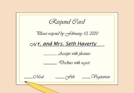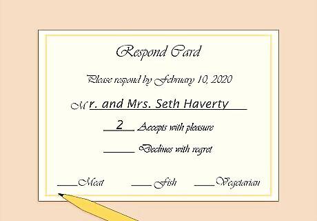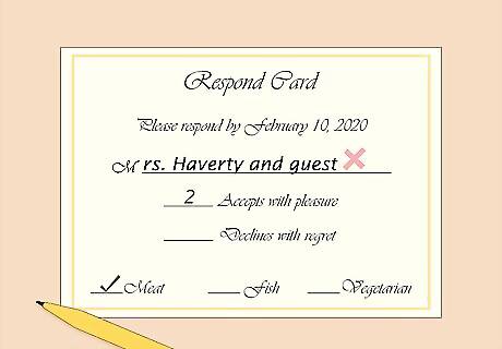 Avoid adding extra attendees. Don’t add extras onto the RSVP and only include the names and number of people who were specifically invited. If everyone in your family is invited, the invitation will be addressed to your entire family (e.g., “The Haverty Family”). If the invitation is addressed to “Mr. and Mrs. Haverty,” only you and your partner are formally invited and your children should not be in attendance. If you’re expecting a child sometime between the “reply by” date and the day of the wedding (and there is no line indicating that the event is adults only) contact the couple to ask if your newborn is welcome to attend.