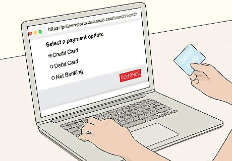 Pay the associated fee. The police department will set part of the fee, which you can look up on their website. It can range anywhere from $5 USD to $25 USD, though it may be higher where you live. LexisNexis adds a $10 USD fee on top of the police department's fee. You can pay by debit or credit card. Once you pay the fee, you can download your report and print it.