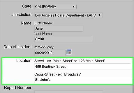 Add the street location of the accident. If you have the street address with the number, use that. If you don't, just put in the cross streets for the accident. Because the street address can vary with accidents, try the cross streets if you don't get a result with the street address.