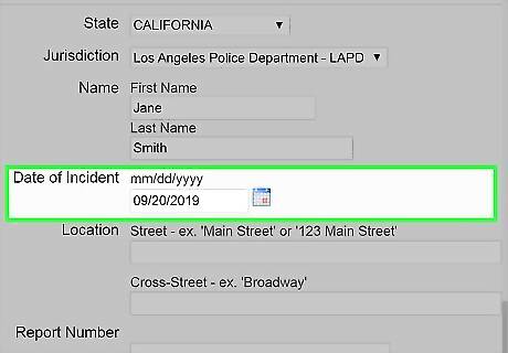 Enter the date of the accident. Click on the small calendar next to the box for the date and then select the date. Make sure you have the right month and year. You can use the arrows at the top of the calendar to change them. You can also just type in the address using this format: MM/DD/YYYY. Keep in mind that a report often won't show up until 2 weeks after the incident, though it can vary based on where you live.