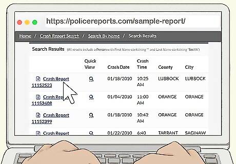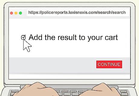Add the result to your cart. This button is next to the search result. Click on it, and it will take you to a page to register as a new customer. Enter your biographical information and then continue to the next page. You will need to click on an option stating why you are using the information, such as "insurance," "involved party," "healthcare," etc.