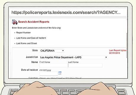 Navigate to the LexisNexis accident report search engine. LexisNexis is the largest legal database in the U.S., so you can find accident reports for many police departments across the country. Start by going to the website at https://buycrash.lexisnexisrisk.com/search. Many police departments only offer online reports through LexisNexis.
