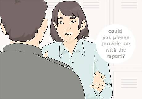Request your report. Provide information about your accident to the clerk at the station. You will need the names of the persons involved, the location of the accident, the date of the accident, and the report number if you have it. They may also be able to look up the report by the license plate number or numbers.