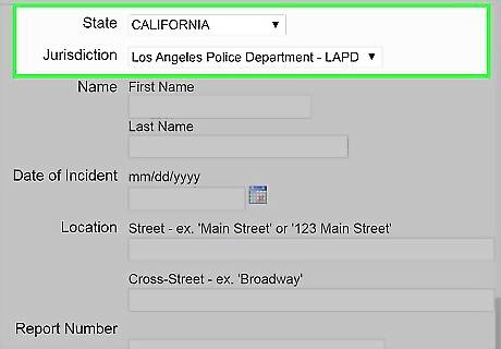 Choose the state and jurisdiction from the menus. Pick the state first, clicking on it to select it. Then, after waiting a moment for the selections to appear, choose the jurisdiction from the drop-down menu. The jurisdiction is just the police department that covered the accident. If you don't see your jurisdiction, LexisNexis may not have information from your area.