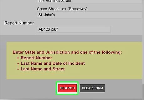 Put in the information for the incident. You'll need the name of the person involved, the date, the location of the accident, and the report number if you have it. Type in as much information as you possibly can and hit "Search." The more information you have, the more likely you are to find the report.