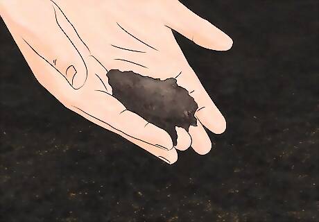 Look for a darker tone in the soil. The more organic material in your soil, the better chance your plants are going to thrive.Topsoil that is too light in color is lacking this material, and will impede the growth of any plants or food that you are trying to plant. In addition, check the surface of the soil for a light or white residue that may indicate the presence of salts or lime, which are both chemicals that can have toxic effects on a garden or lawn. Extremely black topsoil indicates a lack of minerals in your soil. Look for something that’s dark brown, but not black. If the topsoil you want to buy has already been packaged, ask the owner if he has any sample soil you can look at. If the soil is blue-green or gray, it means it’s been continuously wet or saturated which is not good for topsoil. Avoid buying soil that looks like this.
