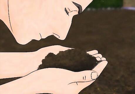 Smell the soil and make sure that it smells sweet. Good topsoil will smell sweet. Avoid any soils that have an off-odor or smell like chemicals such as gasoline. This indicates unwanted and unnatural chemicals which can stop plants from growing, and makes for terrible topsoil. Topsoil takes hundreds of years to be created naturally, and decomposition should have already taken place. If the soil in question smells like rotting material, stay clear of it.