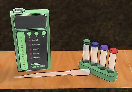 Take a sample of soil to an cooperative extension for testing. Cooperative extensions exist all over the country to help aspiring farmers or gardeners promote the growth of their crops and gardens. Taking your soil to these professionals will provide you with the most accurate results on the nutrient and mineral makeup of your topsoil. Cooperative extensions can also provide you with expert knowledge on how to improve growing your crops. They may also direct you to topsoil retailers and distributors that may help reduce your costs.