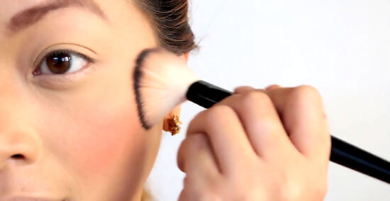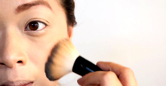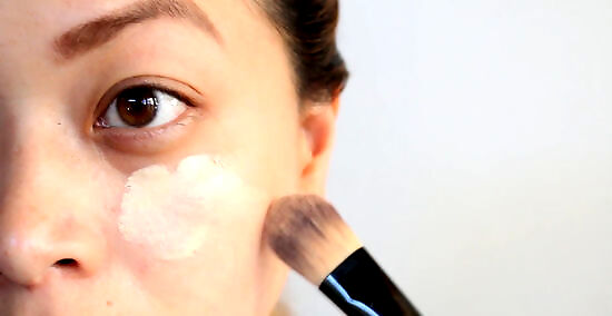 Aim to have a matte face. A shiny face will reflect poorly in the camera and you won't look your best. To avoid too shiny a face, use matte-formula makeup to cover blemishes. For your eye area, use a creamy concealer with reflective qualities. Avoid any foundation or other makeup containing titanium dioxide if flash photography is likely (it is a commonly used sunscreen in makeup). The shielding effect of the titanium dioxide on your face will make your face appear washed out and mask-like.