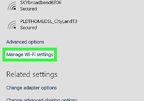 Click Manage Wi-Fi Settings. It’s near the top of the screen below “Advanced options.” If the Wi-Fi switch is not On (blue), click it to enable Wi-Fi now.
