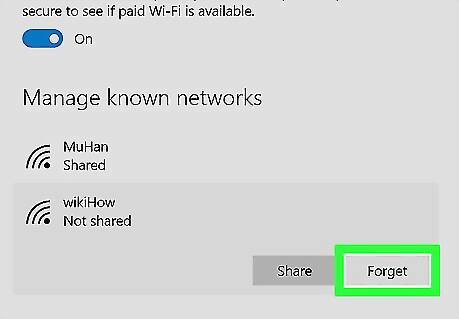Click the network you want to forget. Saved wireless networks are listed under “Manage known networks.” Two new buttons will appear below the network name.