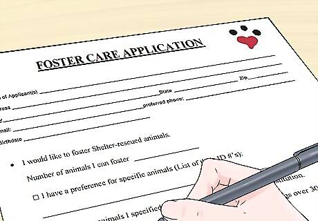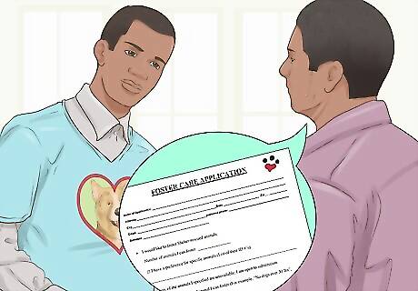 Finish the application process. You will need to finish the application process, which may involve personal and veterinary reference checks. You should make sure you give the rescue organization good references for both your character and your animal husbandry abilities. Finally, you may need to let the rescue organization inspect your home and yard to determine suitability for fostering.