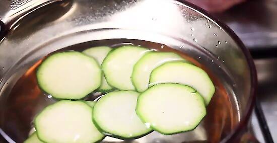 Fill a large bowl with ice water. Add a dozen or so ice cubes to a large bowl of cold water. The cold water should be prepared before you blanch the zucchini.