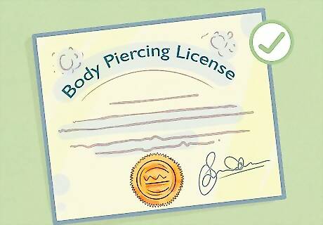 Make sure the shop operates legally. Any studio you work with should have a license to operate and a health certificate hung in plain sight. They should also require age verification before administering piercings. You should not trust a piercing studio that operates illegally.