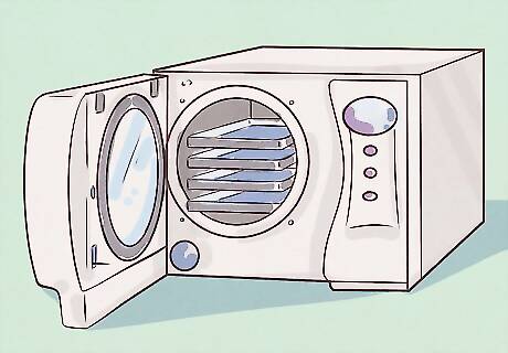 Check out their autoclave. Ask to see the autoclave before booking your appointment. An autoclave is a device used to sterilize jewelry and tools with high heat before a piercing. A reputable studio will have a clean, working autoclave that they use for every piercing. Also ask how equipment that can’t be put in the autoclave is sterilized—they should be disinfected after every use with a commercial bleach or disinfectant. Do not book a piercing at a studio without an autoclave. Some studios use dry heating or boiling to sterilize jewelry, but this is not a sufficient means to kill bacteria that could cause infections.