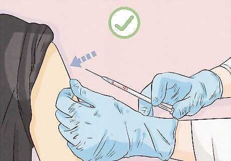 Ask if the shop uses sterile needles. A quality studio uses a new, sterile needle for every customer. Needles are then disposed after a piercing is done. If the shop uses anything other than single-use sterile piercing needles, take your business elsewhere. Piercing guns should not be used at all because they cannot be properly sterilized. The piercer should also wash their hands before putting on fresh gloves for each client. Make sure they change their gloves if they touch anything other than the sterile equipment, like a phone or pen.