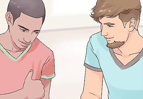 Be slick. One of the best ways to avoid getting caught is to look like you aren’t doing anything wrong, so don’t act guilty! Imagine yourself as an adult who is watching you. Check yourself for any little thing that might call attention to yourself or give away what you are doing. Change your behavior, appearance, or gear as needed. Walk at a relaxed pace, like you own the place, with your chin up and your eyes straight ahead. Avoid slouching or rushing, which shows that you have something to hide. Take nice, deep breathes in through your nose and out through your mouth to stay relaxed. Come up with innocent-looking signals to communicate, like curling your hair in your finger or raising your chin and scratching your neck. Use your pen or pencil to tap messages back and forth, like three quick taps followed by two slow taps to ask for help with question 32 on your test. Use doodles as a written code to hide your cheat sheet’s meaning. For example, with “2 + 2 = 4,” use triangles for “2,” a square for “4,” a circle for “+,” and a slash for “=.”