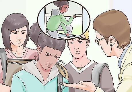 Maintain cover. Be a good student! Remember: you want to get away with stuff, not be known as the “bad kid.” Earn the trust of your teachers and the other staff. Convince them that your consistent good behavior is never going to change. This way they are less likely to notice when it does! Having straight A’s can help you look like a good student, but grades aren’t everything. Whether you ace tests without even trying or struggle to earn okay grades, remember that your behavior is most important. Impress your teachers as someone who is really invested in their schoolwork and takes it seriously, even if school isn’t your strong point. Turn assignments in on time. Take notes in class. Participate in discussions. Get to class before the bell. Ask for help from your teachers if you’re having trouble. Treat your schoolmates with respect to avoid being known as a "bad kid," even if you're a straight-A student.