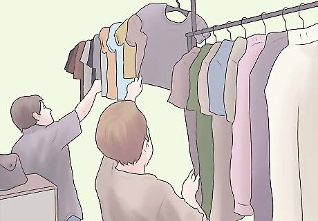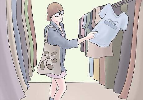 Host a clothing exchange. At a clothing exchange or clothing swap, attendees bring old clothes that are in good condition that they are no longer interested in with the intention of trading them with others’ clothes. You can hold a clothing exchange with friends and classmates who share your style. Alternatively, if the thought of wearing clothes that once belonged to someone you go to school with is unappealing to you, you can also host clothing exchanges with cousins, distant relatives who are your age, or any teenage children your parents’ coworkers may have.