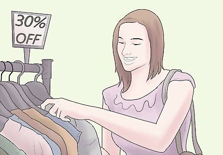 Buy from second-hand shops. There are a variety of second-hand shops. While the way that these stores get their merchandise varies, each type obtains used clothing in decent condition and resells those clothes at a significantly lower price. You may not be able to know if a particular store has Hollister clothes in it, but if you make it a habit of digging through the racks on a consistent basis, you are likely to find some eventually. Check out thrift stores. Thrift stores are often run by non-profit organizations and have charitable intentions. The majority of their goods are donated to them. Since they do not have to pay for their merchandise, even name brand clothing is sold at exceptionally low costs. Look at consignment stores. At a consignment shop, the store is out to make a profit. The stock is given to the store by the store’s customers, and part of the profit is shared with the supplier after the clothes have sold. Check out resale shops. A resale shop is similar to a consignment shop in that its merchandise is given to the shop by its customers, and the customers who supply the merchandise receive compensation for it. At a resale shop, though, the clothing is bought outright. As a result, resale shops tend to be pickier about their merchandise and may have slightly higher quality or more fashionable stock.