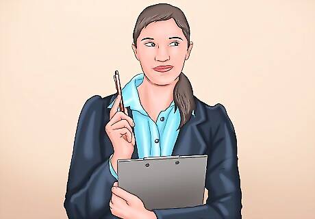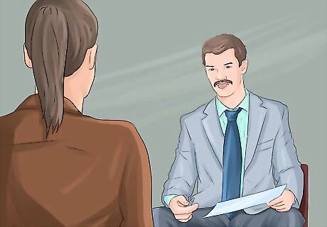 Practice good interview skills. In the event you're called in for an interview for a copywriting position, make sure you practice solid interview skills. A successful interview can help you land the right job. Always research the business before going into an interview. You want to have some sense of a company's history, ethics, and atmosphere. Do some research on a company's website and browse their social media profiles. Dress up for an interview. While you're on the job hunt, have a few go-to interview outfits ready. For men, a button down shirt and tie with dress pants is always a good choice. For women, a nice skirt and blouse, a suit, or dress pants and a nice top can work. Make sure to wear dress shoes as well. You don't want to offset a professional outfit by wearing sneakers with it. Arrive a few minutes early and try to make a good impression on everyone. Be polite to the person who checks you in and offer a smile to anyone you see in the hallway. Use body language to convey confidence when first meeting the interviewer. Give a firm handshake, make eye contact, and smile and nod during the interview to show you are listening. Ask questions at the end of the interview. You should not merely ask questions of logistics, like, "When can I expect to hear back?" Ask open-ended questions that convey a genuine interest in the company. For example, ask something like, "What's your company's culture like?" or "What do you like about working here?"