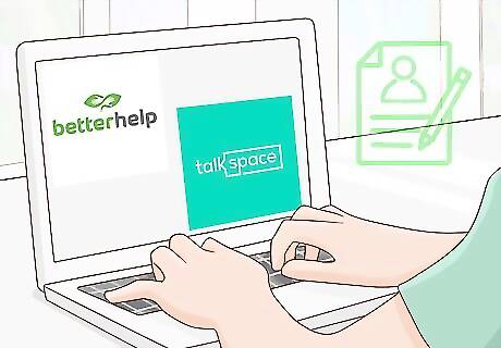Enroll in a telehealth counseling service so you can get treatment. If you have insurance, call your insurance company or go to their website to find their telehealth provider. As another option, do an online search for telehealth providers that operate in your area. If this doesn’t work, sign up for a counseling app, like BetterHelp or Talkspace. Provide your personal information to create an account. For instance, anyone can sign up for a service like BetterHelp or Talkspace, though they can be costly. Additionally, your insurance may offer other telehealth services that are low-cost, so check your benefits.