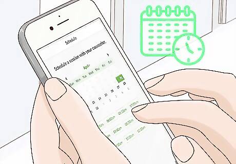 Schedule video appointments with your therapist. The website or app will offer you times when your therapist is available. Choose an available time that fits your schedule and set up an appointment. Make sure you are logged in when your appointment time arrives so you don’t miss it. If you miss a video appointment, you may not be able to schedule another one.Variation: Counseling apps often allow you to send your therapist questions or messages between appointments, and they will reply back to you. If this service is available to you, use it to get additional care when you need it.