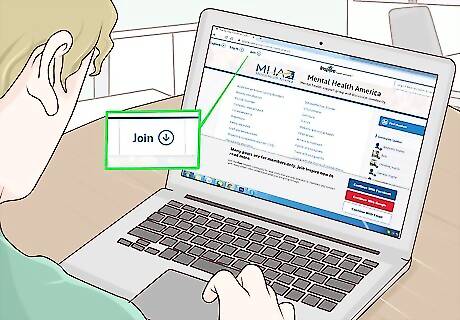 Join an online support group if there's not one in your area. You might struggle to find a group that meets in your area, but that doesn't mean you can't get the support you need. Visit websites dedicated to mental health and join the forums. Then, post on the forum to find people you can talk to about your symptoms or struggles. For instance, you might use Mental Health America's Inspire forum for support. You can find it here: https://www.inspire.com/groups/mental-health-america/ You might also join a community platform like Reddit. However, pick a moderated forum so you know the content is reviewed and look for supporting evidence for advice you receive. You may be able to find support on social media using mental health hashtags, such as #addiction, #anxiety, #depression, or #mentalhealth.