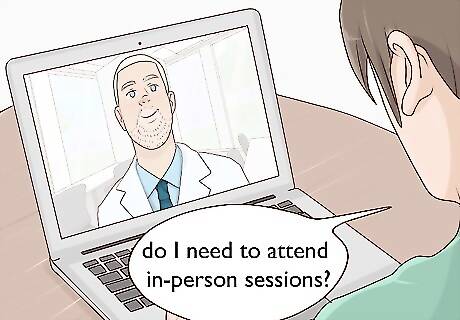 Ask if you need to attend in-person sessions as part of your therapy. While many telehealth services are designed to be completely online, your doctor may require you to occasionally attend in-person sessions. For instance, you may have to go to a monthly in-office session. Talk to your doctor to find out if this is a requirement for treatment before you get started. Your doctor may want to meet in person so they can get to know you better and can better evaluate your nonverbal communication. This will help them give you better treatment.