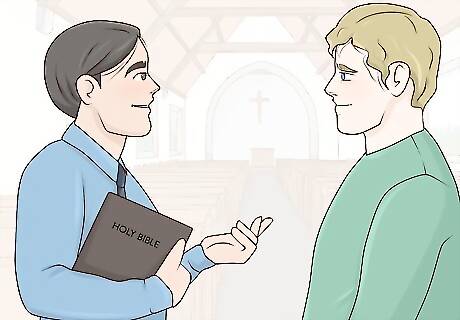 Talk to your religious leader if you have one. Your religious leader can listen to you, offer you support, and suggest coping strategies that are based on your faith. While they likely won’t be a replacement for a licensed therapist, they can be a great resource if you’re having trouble finding a doctor. Ask your religious leader if you can meet with them for a one-on-one session. Then, share what you’ve been going through. Some religious leaders are also trained counselors, so ask yours if they have any training.Tip: You might feel embarrassed about talking to your religious leader because you’re worried that they might judge you or share your business with everyone. However, they are generally committed to withhold judgement and keeping information told to them in confidence secret.