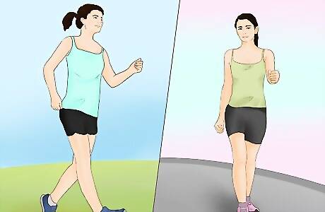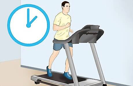 Do interval training. You can get a lot from a short workout if you vary the intensity of your effort throughout the workout. You break the effort into an easy pace, a moderate pace, and a hard pace. You can decide how many effort levels you want, as long as you are varying the intensity of the intervals as you work out. A common way to do this is to follow the 10-20-30 method. You do an activity, like cycling or rowing, at an easy pace for 30 seconds. Then, increase to a moderate pace for 20 seconds. For 10 seconds, do the exercise as fast and hard as you possibly can. Keep repeating over the length of your workout. If you are using a treadmill, it can be hard to get the treadmill up to speed fast enough to do very short intervals. You'll want your intervals to be more like 90 seconds of jogging followed by one minute of sprinting. Do this for about 15 to 20 minutes (remembering to warm up with five minutes of walking beforehand and cool down with 5 minutes of walking afterwards).