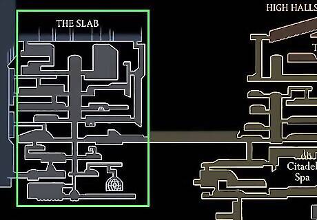 Go to The Slab. The Slab is Pharloom’s prison, and there’s only one way to get in. Starting at the room you defeated Last Judge in, go right and jump up the swivel platforms in the first vertical chamber. Enter the door on the right and continue working your way up. At the first left-right junction, go left. Climb up twice and go right to the vertical column. Jump up and immediately go left. The Slab is on the other side of the large, horizontal platform. Alternative path: If you’ve already explored The Citadel, the quickest route starts in the dining room, where you meet Loyal Mergwin. Go left, and take the closest exit on the left of the vertical chamber. Continue going left, and you’ll end up in the Slab.