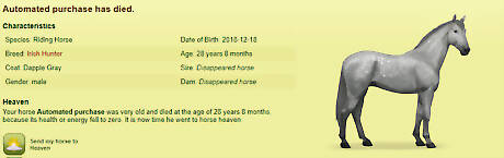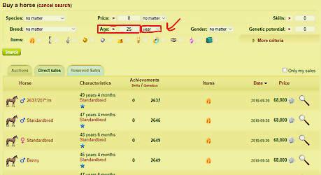 Make sure you have a horse aged 25+ years on your breeding farm. If you don't, you will need to buy one at the horse sales. If you are buying a horse from the sales, be sure to use the criteria boxes. In the age box, type 25, and make sure the little symbol says greater than, not equal to.