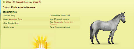 Send a horse aged 25+ to heaven. This is the only way to get this divine horse. Make sure you don't sell him to the Safe Haven, though; you want to send him to heaven. This means that your horse will have to die.