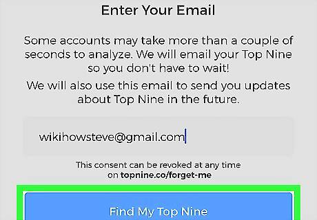 Tap the Find My Top Nine button. This is a blue button at the bottom. It will generate a 3-by-3 grid of your nine best posts from 2018, and show it on the next page.