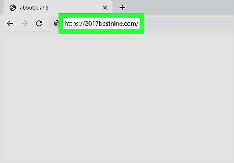Open 2017bestnine.com in your internet browser. Type or paste this link into the address bar, and press ↵ Enter or ⏎ Return on your keyboard. This website will generate a 3-by-3 grid of your best posts from 2018. As an alternative, you can also try https://topnine.co in your browser. You can use any mobile or desktop internet browser to use this online tool.