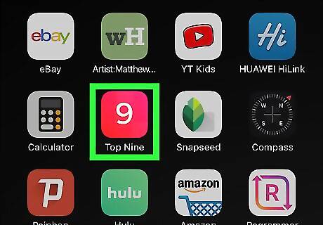 Open the Top Nine app on your phone or tablet. The Top Nine icon looks like a white "9" on a red background. You can find it on your home screen, in an app folder or on the Apps tray.