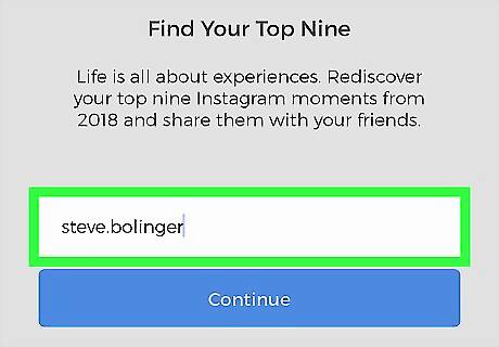 Enter your Instagram username into the "Instagram Username" field. Tap the white text box at the bottom of the page, and type the username for the account you want to generate a top-nine grid.