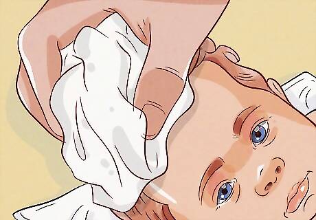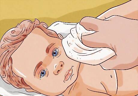 Clean your baby’s face with the washcloth and just water. Gently wipe your baby’s face with the washcloth, making soft strokes. When you clean your baby’s eyes, wipe from the inside corner to the outside corner. Additionally, be sure to clean around and behind your baby’s ears. It’s best to clean your baby’s face with water alone. If you’re being diligent about cleaning up spit up and drool, then their face shouldn’t be very dirty. If you use soap on your baby’s face, it could dry out their delicate skin or get into their eyes or mouth.