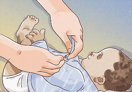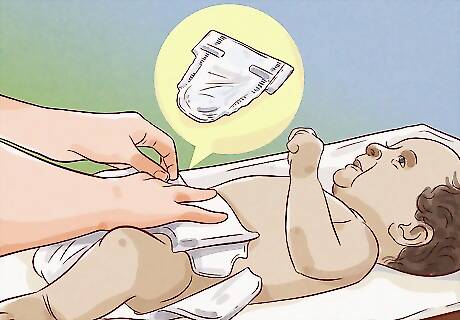 Put a clean diaper on your baby. After your baby is totally dry, put on a new diaper. Make sure the diaper doesn’t go up over the umbilical cord stump, if they have one. If your son has been circumcised, you may need to put petroleum jelly in the diaper to keep the padding from sticking to your baby. Talk to your doctor to find out if you need to do this.