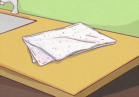 Spread a soft blanket or towel over the flat surface to cushion your baby. Choose a soft fabric that will keep your baby comfortable. For instance, you might use a baby blanket or a plush towel. If the surface you’re using is hard, like a countertop, you might even layer the towels and blankets so your baby is very comfortable. The towels and blankets will also help you avoid making a mess while you’re bathing your baby. They’ll soak up any water that drips off of the baby or your washcloth.