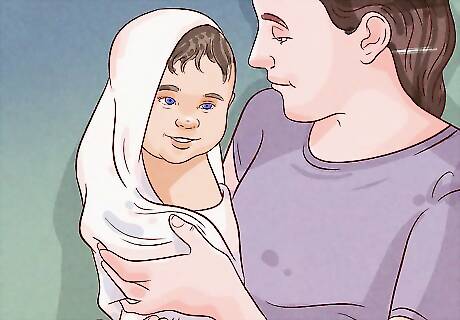 Dress your baby in clean clothes. Put fresh, clean clothes on your baby, then swaddle them in a blanket. Spend a few minutes cuddling your baby so that they experience baths as a calm, comforting experience.