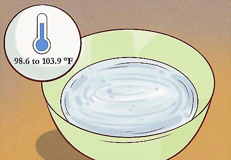 Fill a nearby sink or container with warm water. Since you’re not putting your baby in the water, you can any container that’s clean for your warm water, or take it directly from the sink. If you're using a container, make sure it's within arm's reach of your bathing station. Before you bathe your baby, feel the water with your hand to make sure it’s warm but not hot. For instance, you might use a plastic bin, large mixing bowl, or the kitchen sink. If you have a bath thermometer, check that the water is around 98.6 to 103.9 °F (37.0 to 39.9 °C).Tip: During a sponge bath, you won’t put your baby inside the tub of water, so you don’t need a baby bathtub. You can use whatever container is most convenient for you.