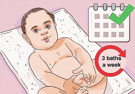 Bathe your baby 3 times a week to keep them clean. Your baby doesn’t need to be bathed often until they start crawling around. In fact, washing them too often can irritate their skin. Stick to just 3 baths a week. If your baby gets very dirty after being sick or having a diaper blowout, it’s okay to give them an extra bath. However, you might consider adjusting your baby’s bathing schedule if their next bath is coming up soon.