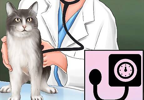 Have your cat tested for related conditions. Primary hypertension, or high blood pressure that's not caused by another medical condition, is rare in cats, so the vet will likely test for a secondary disorder. Typically, hypertension is related to heart disease, hyperthyroidism, kidney disease, or another underlying condition. Tell the vet if your cat takes any other medications or if it's ever been diagnosed with a medical issue. Some medications, such as diuretics, can interfere with its effectiveness or cause blood pressure to become too low.
