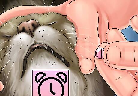 Administer amlodipine every 24 hours. Amlodipine is effective for 24 hours, so it's most often prescribed to be taken once daily. Do your best to give your cat its medication at the same time each day, such as with breakfast or dinner. You can choose the time of day that's best for you and your cat, but just be sure to stick to that same time each day.